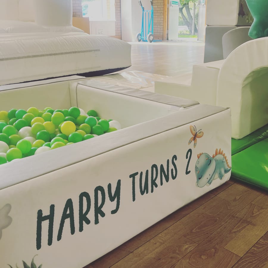Tots toun can add a vinyl sticker with your little ones name onto the soft play or bouncy castle to create a personalised touch.