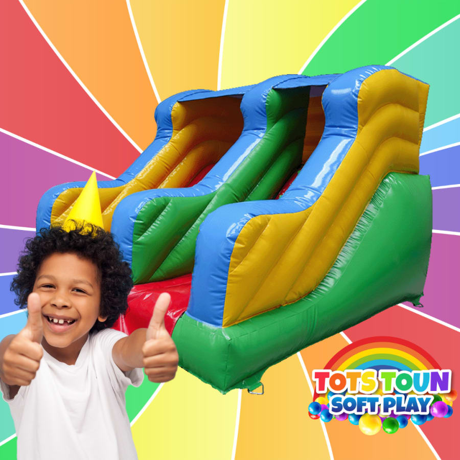 Our Rainbow Inflatable Slide is designed to accommodate the energy and enthusiasm of children up to the age of 9. Its compact yet spacious layout allows for hours of bouncing and sliding fun. It goes perfectly with our Rainbow Bouncy Castle Hireand Toddler time soft play.