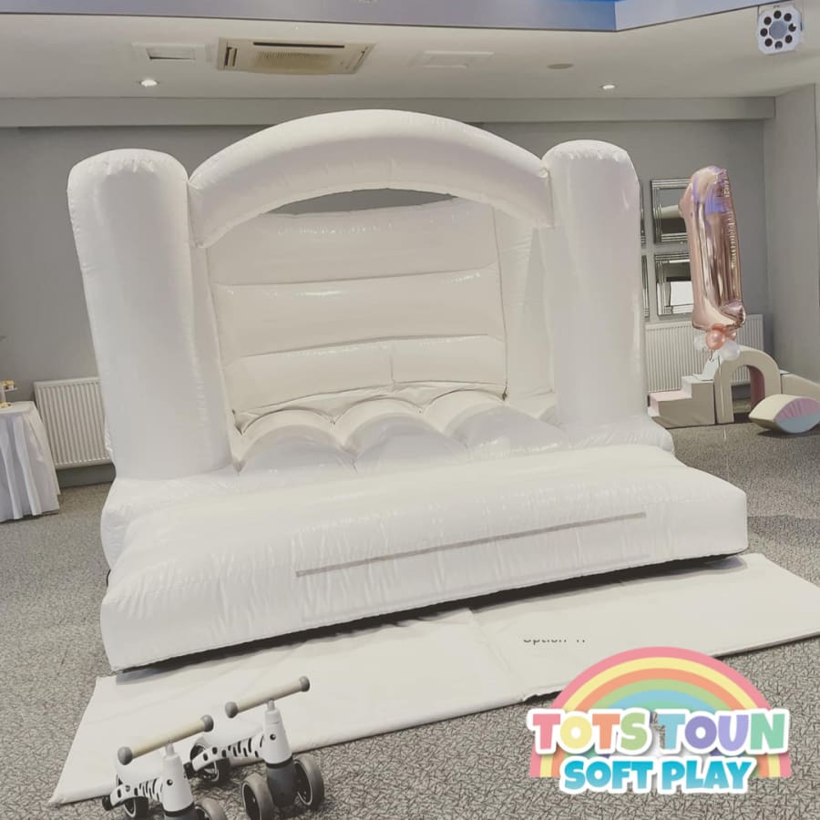 Make your event unforgettable with our White Bouncy Castle. Contact Tots Toun Soft Play today or give us a call on 07498195173 to book your rental and let the bouncing fun begin!