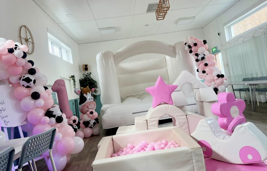 Want to match the bouncy castle to your party theme? No problem! Our White Bouncy Castle can be easily decorated with balloons and vinyl, allowing you to create an atmosphere that complements your event. Whether it's a princess-themed party or a superhero extravaganza, this bouncy castle will fit right in. We have an in-house design team that thrive on bringing your vision to life, Contact Tots Toun Soft Play and have a look at our Corporate Branding Fife