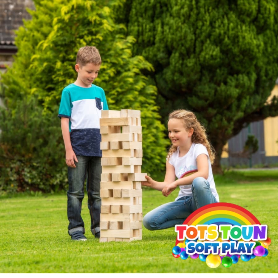 Don't miss out on the fun and laughter that Giant Jenga brings. Contact Tots Toun Soft Play today to book your Giant Jenga set and make your next event a memorable one!