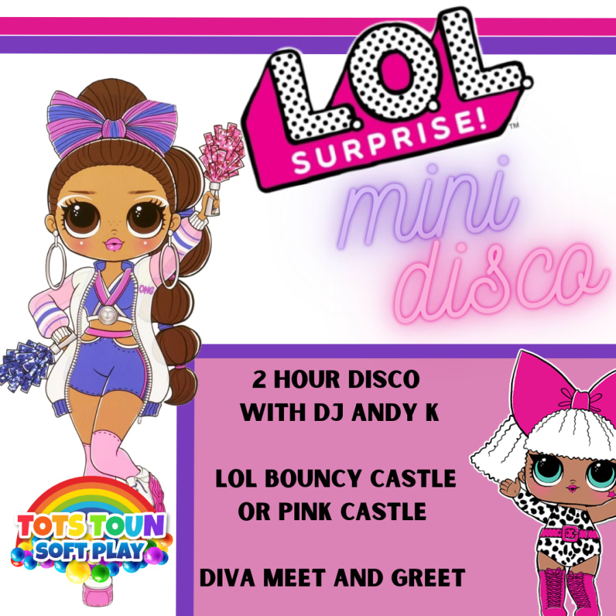 Throw your child a diva-tastic birthday party with an exciting LOL Surprise themed bash! Get the party started with a fabulous kids disco, filled with catchy beats and flashing lights. Your little divas will love meeting and posing with their favorite LOL Surprise character, who will amaze them with their dazzling dance moves and stylish outfits. The party wouldn't be complete without a bouncy castle fit for a diva! Our inflatable LOL Surprise castle features a brilliant themed art work and plenty of space for bouncing, allowing your child and their friends to have a super fun and unforgettable birthday bash! If you have over 25 guests attending, we recommend adding an extra bouncy castle to make sure everyone can get in on the fun. Tots toun soft play can provide LOL Surprise-themed kids discos and bouncy castles across various locations, including Fife, Dunfermline, Kirkcaldy, Lochgelly, Rosyth, Leven, Glenrothes, Cupar, St Andrews, Edinburgh, Falkirk, Perth, and Dundee.