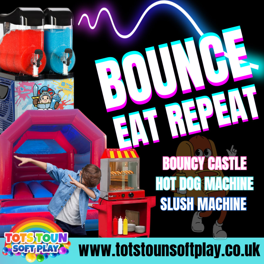 Introducing the Ultimate Party Package by Tots Toun Soft Play! Get ready to take your party to the next level with our incredible combination of a bouncy castle, slush machine, and hot dog machine. Designed to cater to up to 40 people, this package is the ideal choice for birthday parties and other special occasions.